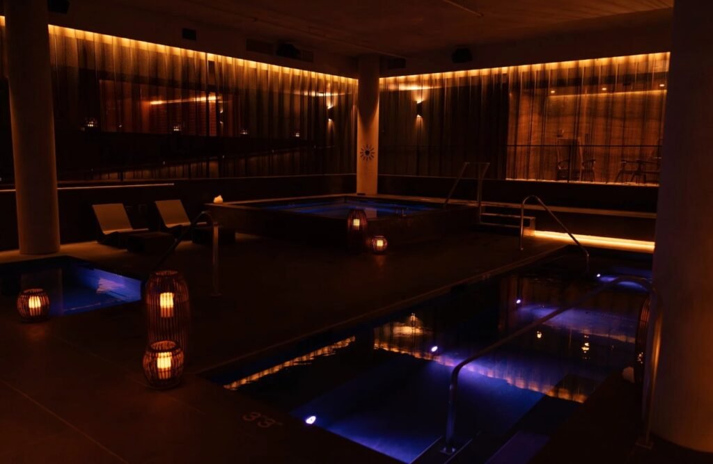Cascada stands out not just for its architecture but for what lies below it: a hydrothermal spa with five underground pools, steam rooms, saunas, and cold plunges.
